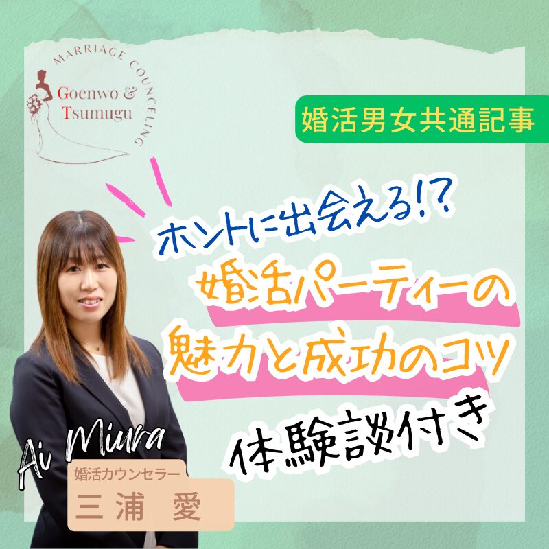 また、婚活パーティには行ったことあるけど上手くいかなかった、いい思い出がないといった方もいると思います。