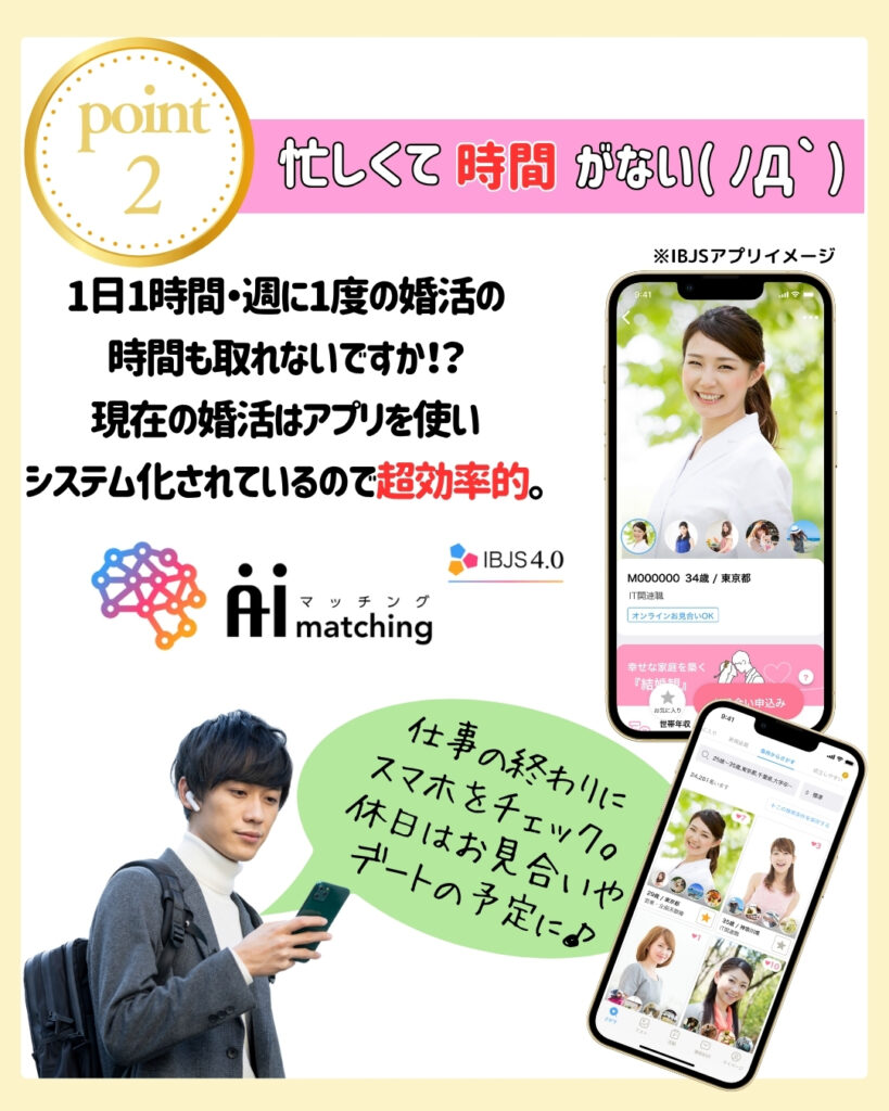 - 出会いがなくいい人が見つからない。