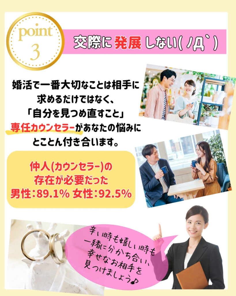 年齢・性別関係なく『結婚したい!』と思うあなたの気持ちに寄り添い1番の味方となってサポートさせていただきます。